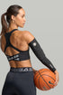 Professional arm protection with NBL partnership quality. This sleek black compression arm guard delivers targeted 15-20 mmHg compression with strategic elbow padding for comprehensive arm support during dynamic sports activities.