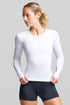 Endurance-grade compression designed for the dedicated female athlete. This crisp white long sleeve compression tee delivers targeted muscle support and enhanced performance with thoughtful design features that move with your body.